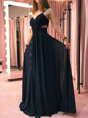 A-Linie V-Ausschnitt Chiffon Lange Ballkleider