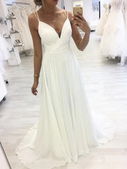 A-Linie V-Ausschnitt Chiffon Träger Lange Ballkleider