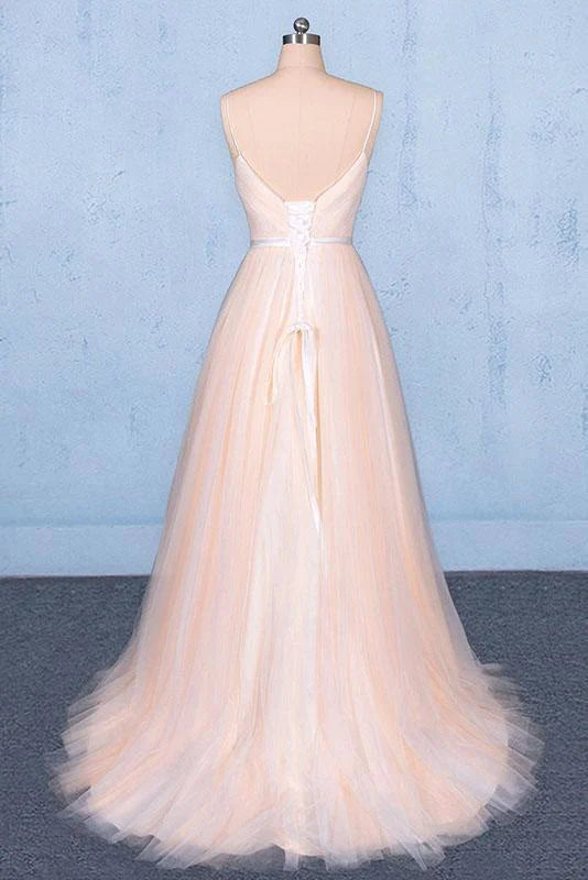 A-Linie V-Ausschnitt Ärmellos Träger Tüll Ballkleider