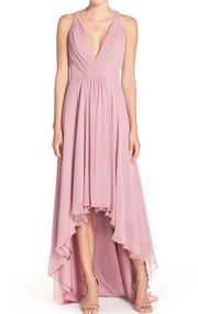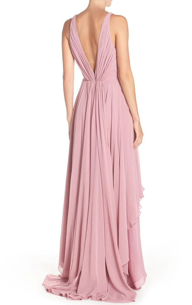 Chiffon-Ballkleid mit tiefem V-Ausschnitt und hohem, niedrigem Abschluss