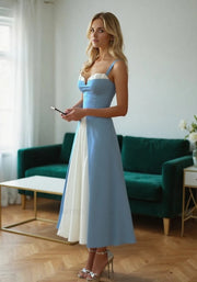 Elegant Strappy Dress with Color-Block Panels and Self-Tie Detail Prom Dresses