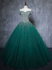 Wunderschöne schulterfreie, lange Ballkleider aus Tüll mit Perlen