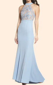 Meerjungfrau Neckholder Spitzen Jersey Langes Ballkleid - US 2 / UK 6 / EU 32