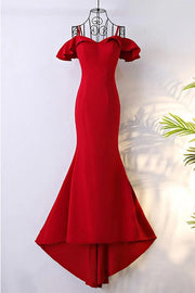 Meerjungfrau-Abschlussballkleid mit schulterfreier Schleppe und langem Abschlussballkleid