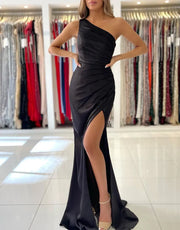 Meerjungfrau One-Shoulder-Lang-Satin-Ballkleid mit Schlitz