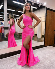 Meerjungfrau One-Shoulder Pailletten Perlen verziert Ballkleider
