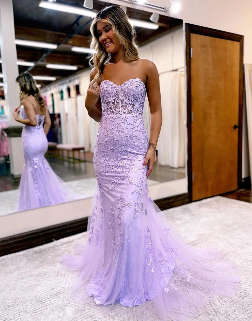 Meerjungfrau-Ballkleid im trägerlosen Korsett-Stil mit Applikationen