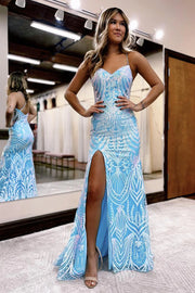 Meerjungfrau V-Ausschnitt Pailletten Spitze Lange Ballkleider mit Schlitz