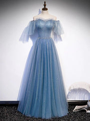 Hals Tüll Flare Ärmel Perlen Pailletten Ballkleider