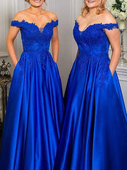 Schulterfreies, langes Ballkleid mit Perlen und Spitze