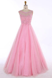 Bodenlanges, rückenfreies Ballkleid mit U-Ausschnitt und Perlenapplikationen