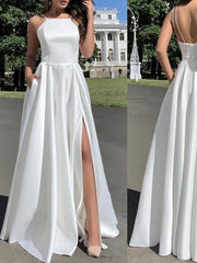 Schlichtes langes Ballkleid aus Satin mit offenem Rücken und Schlitz