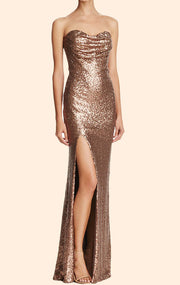 Schlichtes trägerloses langes Abendkleid mit Pailletten