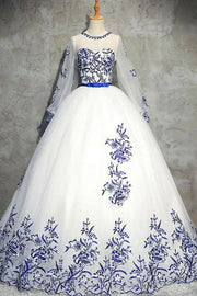 Langes Ballkleid mit glatten Ärmeln und Tüllapplikationen
