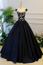 Langes Ballkleid aus Satin mit U-Ausschnitt und Applikationen