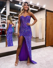 Trägerloses, langes Ballkleid mit Pailletten und Schlitz