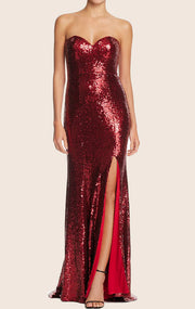 Trägerloses, langes Ballkleid mit Herzausschnitt und Pailletten