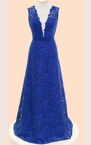 Träger V-Ausschnitt Spitze Ballkleid Abendkleid