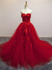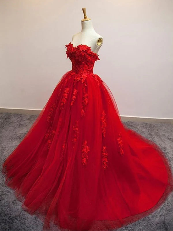 Herzförmiger Ausschnitt, Spitzenapplikationen, lange Ballkleider