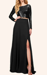 Zweiteiliges Ballkleid mit langen Ärmeln und Pailletten