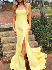 Meerjungfrau Einfache Satin Lange Ballkleider