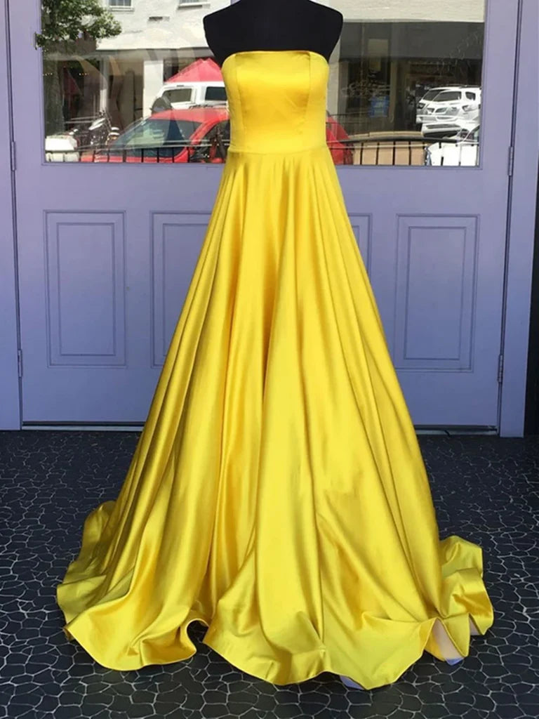 Einfache trägerlose lange Ballkleider aus Satin Lange formelle Abend- und Abschlusskleider