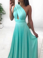 Einfaches One-Shoulder-Chiffon-Ballkleid in Langform