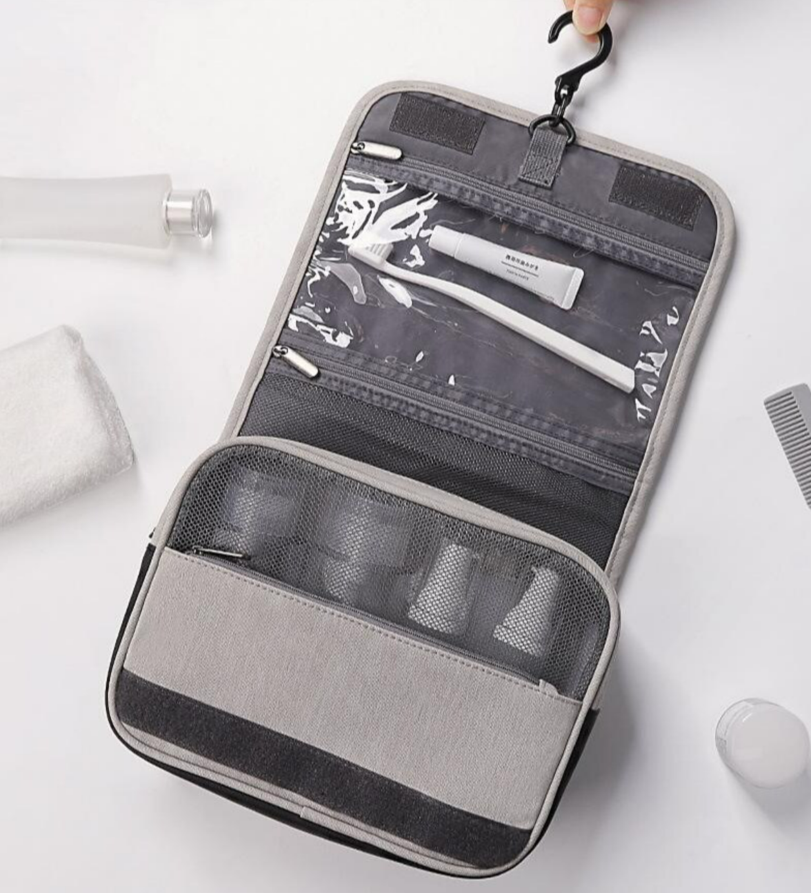 Kulturbeutel, Reisetasche mit Aufhängehaken, wasserabweisende Make-up-Kosmetiktasche, Reise-Organizer für Accessoires, Shampoo, Behälter in voller Größe, Toilettenartikel - Dianthus Ash