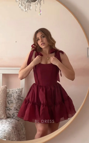 A-Linie Burgunderrot Kurze Abendkleider Brautjungfernkleider Abendkleid Ballkleid