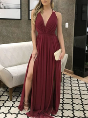 A-Linie Chiffon Lange Ballkleider Lange formelle Abendkleider mit Schlitz