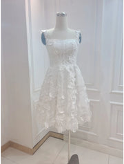 A-Linie Cocktailkleider Blumenkleid Sommer Kurz/Mini Ärmellos Spaghettiträger Tüll mit Applikationen