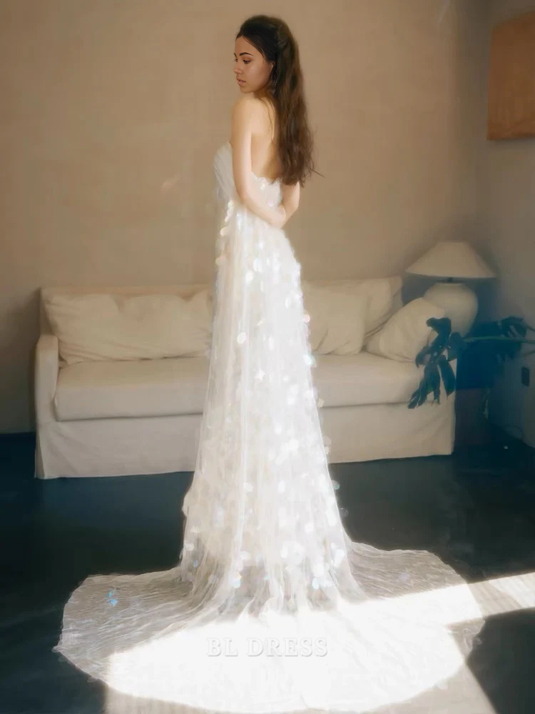 A-Linie Elegantes trägerloses Pailletten-Weiß Lange Abendkleider Brautjungfernkleider Abendkleid Ballkleid