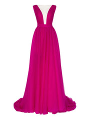 A-Linie Abendkleid Schönes Rückenkleid Verlobung Hofschleppe Ärmellos V-Ausschnitt Tüll mit Schleife(n) Falten