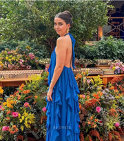 A-Linie Neckholder Rüschen Chiffon Blau Abendkleider Brautjungfernkleider Abendkleid Ballkleid