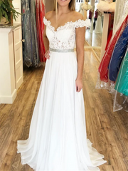 A-Linie, schulterfrei, Spitze, Chiffon, lang, Ballkleider, formelle Abendkleider