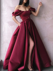 A-Linie, schulterfrei, lange Ballkleider mit Schlitz, lange formelle Abendkleider