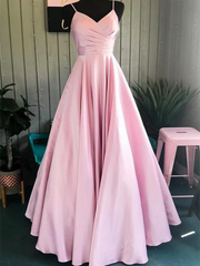 A-Linie Spaghettiträger Satin Lange Ballkleider