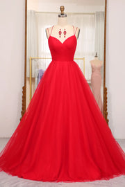 Langes Ballkleid in A-Linie mit Spaghettiträgern und überkreuztem Rücken