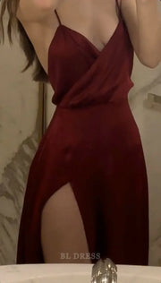 A-Linie Spaghettiträger Rot Satin Abendkleider Brautjungfernkleider Abendkleid Ballkleid