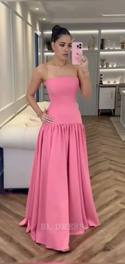 A-Linie trägerlos Hellrosa Abendkleider Brautjungfernkleider Abendkleid Ballkleid