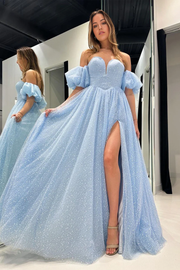 A-Linie Sweetheart Blaues Korsett-Ballkleid mit Schlitz