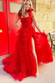A-Linie Herzausschnitt Süßes Tüll Stufen Langes Ballkleid mit Schlitz