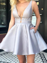 A-Linie V-Ausschnitt Rückenfreies kurzes Ballkleid
