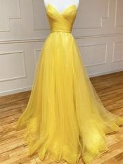 A-Linie V-Ausschnitt Rückenfrei Tüll Lange Ballkleider
