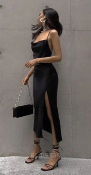 Etuikleid Spaghettiträger Schlitz Schwarz Abendkleider Brautjungfernkleider Abendkleid Ballkleid