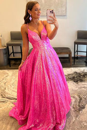 A-line Glitter Sequins Long Prom Dress - US 2 / UK 6 / EU 32