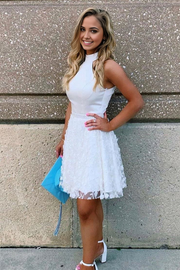 A-line High Neck Short White Short Homecoming Dresses Prom Dresses