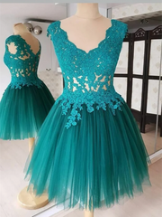 A Line V Neck Lace Short Prom Dresses Formal Homecoming Dresses