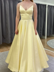 A Line V Neck Satin Long Prom Dresses - US 2 / UK 6 / EU 32