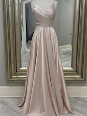 A Line V Neck Satin Long Prom Dresses - US 2 / UK 6 / EU 32